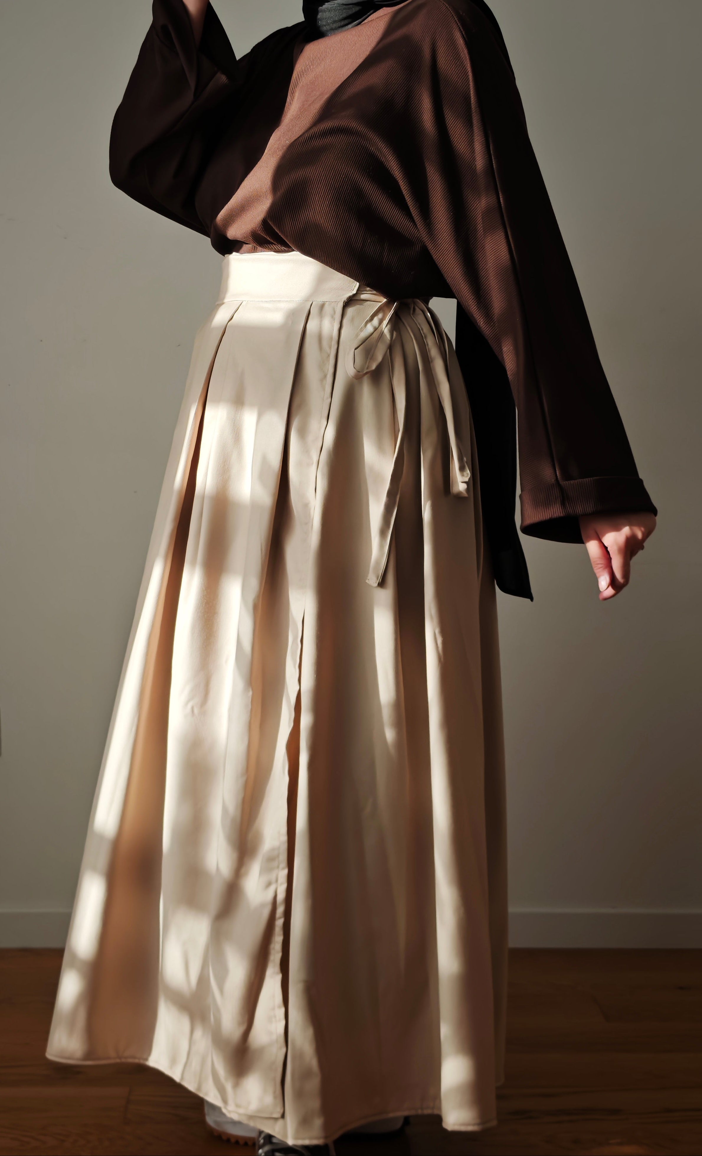 Pièce signature de la maison, la Jupe Essentielle allie coupe portefeuille modulable, confection artisanale et élégance intemporelle.